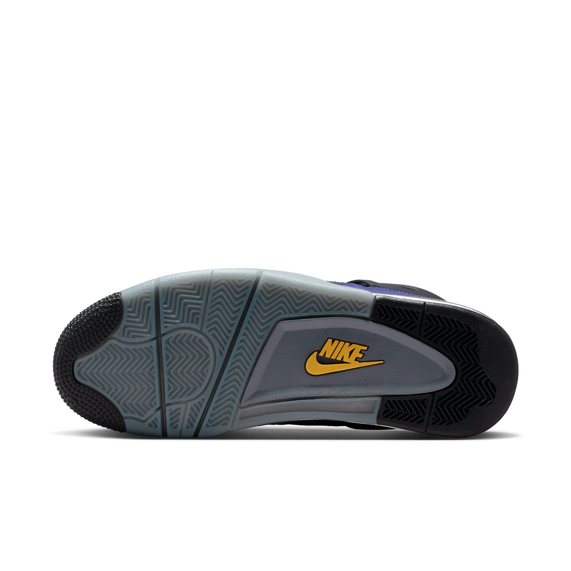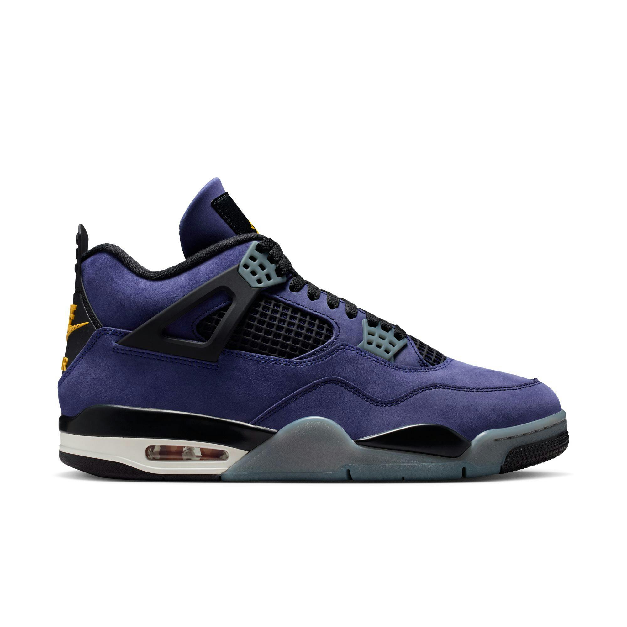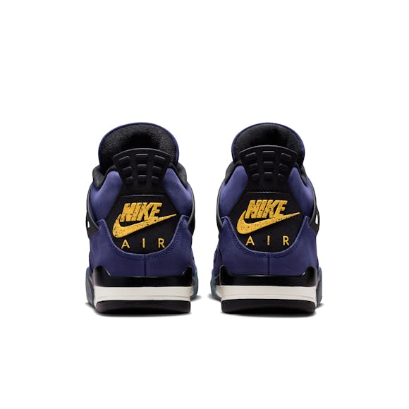 This AJ4 Retro pays homage to those moments in quintessential Jordan colors. The deep Imperial Purple upper is rendered in premium nubuck, with hits of University Gold at the outsole and Air units tying the look together.